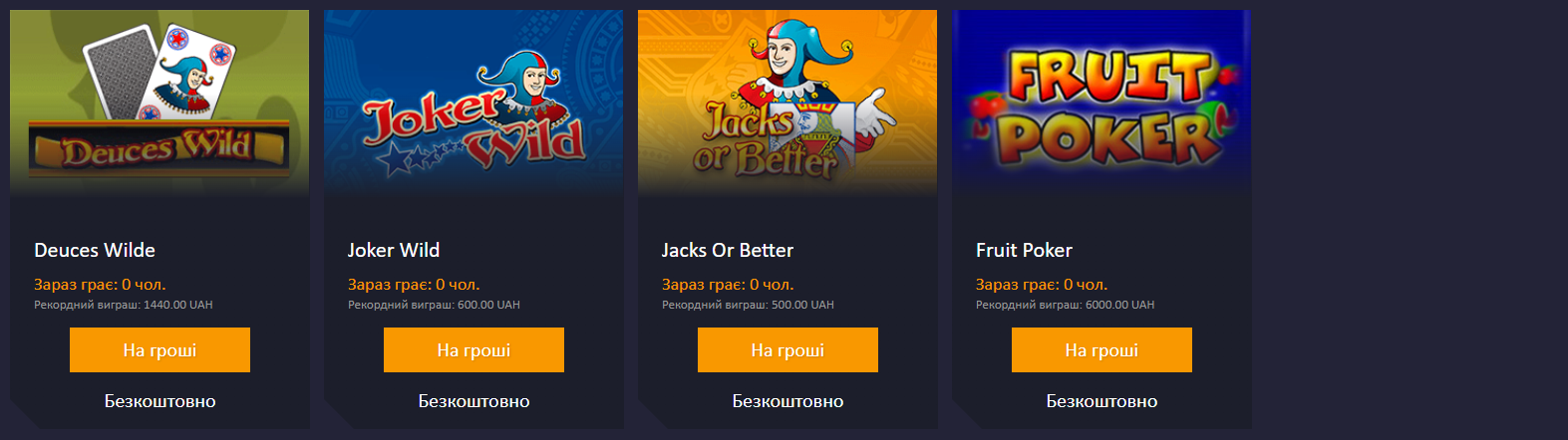 Deuces Wild, Jacks or Better, Fruit Poker |