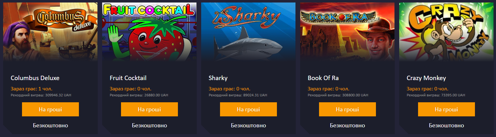 Монослот – популярное онлайн казино с европейской лицензией. У нас игроки из Украины могут запустить известные онлайн слоты, видеопокер, рулетку и другие игры от ведущих разработчиков со всего мира. Мы собрали замечательную коллекцию игровых автоматов для розыгрыша собственного джекпота, предлагаем ежегодные лотереи, турниры и акции. Именно в Монослот вы получите самые выгодные бонусы без вейджера, чтобы иметь высокие шансы на выигрыш благодаря увеличенному банкролу.